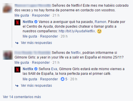 A continuación vemos un claro ejemplo de ello en la sección de comentarios de una publicación aleatoria de Netflix, lo cual no solo da la oportunidad de resolver inquietudes a clientes o clientes potenciales, sino que permite fidelizarlos. Resolver un problema de forma correcta a un cliente insatisfecho puede suponer su captación y retención definitiva.